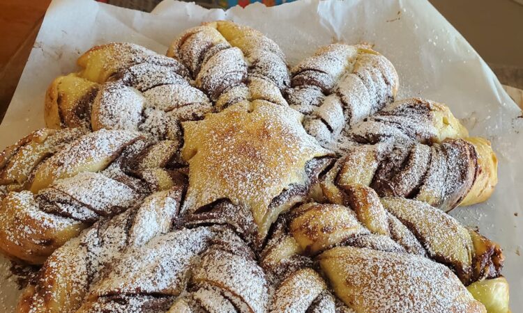 Once baked, lightly dust the loaf with flour for a soft, snowy finish.